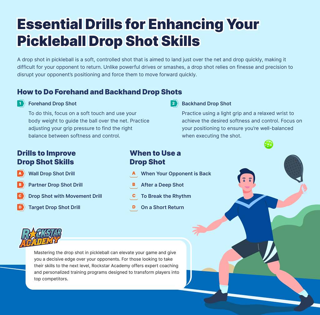 Mastering the drop shot in pickleball can elevate your game and give you a decisive edge over your opponents. For those looking to take their skills to the next level, Rockstar Academy offers expert coaching and personalized training programs designed to transform players into top competitors.