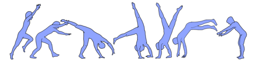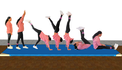 Lean back and flip into a handstand position, then land on your feet again. It’s a classic tumbling move that feels like flying backward!