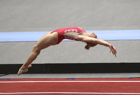 A fast, straight-bodied back salto with a slight arch, often used in combination tumbling. It’s all about speed and flow.