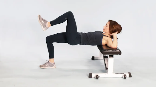 With your upper back on a bench, plant one foot on the floor and lift the other. Push your hips up until your shoulders, hips, and knees align, then lower back down. This hits your glutes hard and boosts athletic performance.