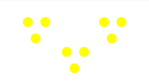 This one looks like an open triangle where dancers are spaced diagonally and vertically. Perfect for emphasizing a center cheerleader or move. It gives a sense of depth and draws the eye naturally to the middle.