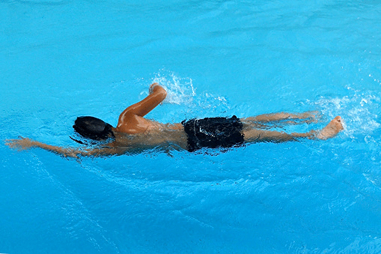 Keep the arm close to your body as you pull down to hip level, then bring it back along your chest. Rotate your body toward the pulling side to add power, but keep most of your body beneath the surface for stealth and efficiency.