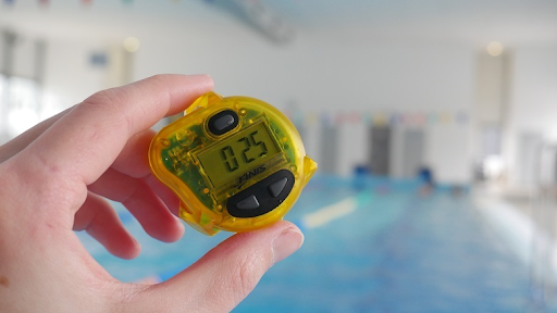A tempo trainer works like a swimming metronome, helping you match your strokes to a steady beat. You set the device to beep at regular intervals, then take a stroke at each beep to build rhythmic consistency.