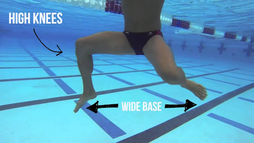This advanced technique is called the “eggbeater” or “rotary kick.” Move one leg clockwise and the other counterclockwise, so as one leg pushes out, the other pulls in. When done right, it’s incredibly efficient.