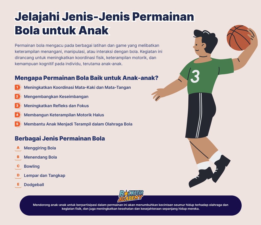Mulai dari menendang sepak bola hingga menangkap bola basket, berbagai permainan bola yang tersedia dapat dinikmati dan dikuasai oleh setiap anak. Mari kita pelajari beberapa jenis permainan bola yang menarik yang dapat bermanfaat bagi anak-anak dari berbagai usia dan kemampuan.