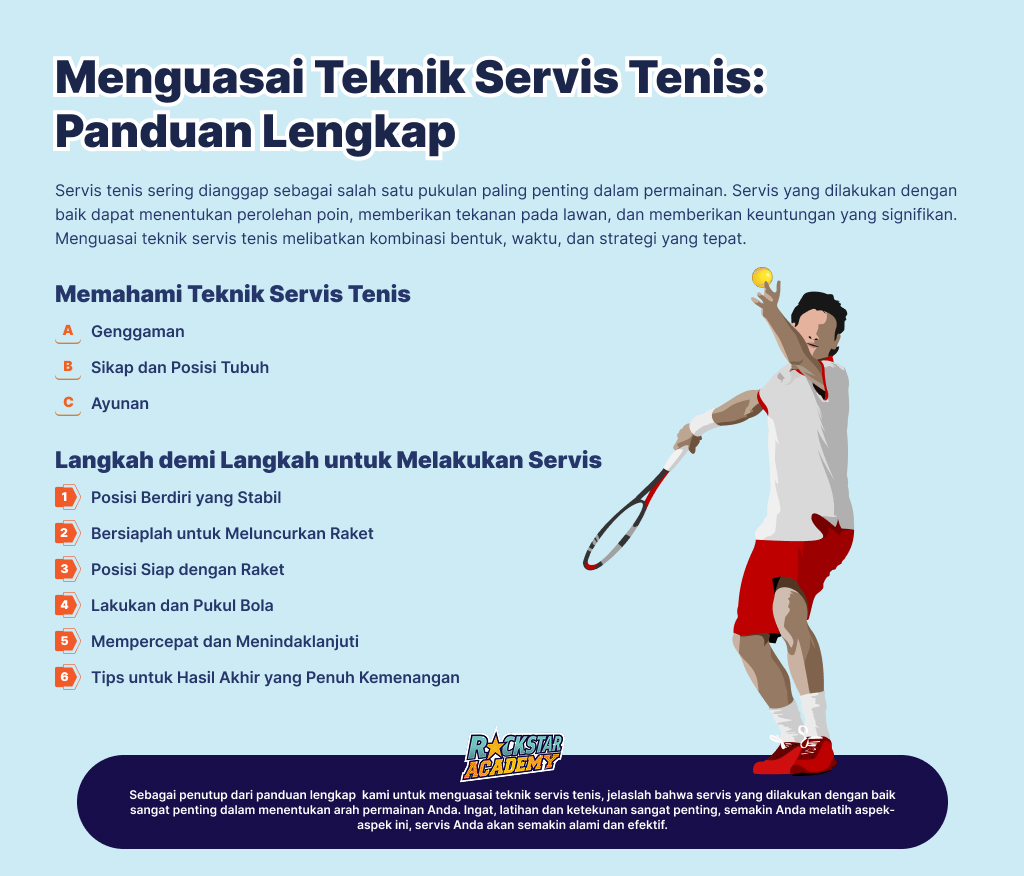 Menguasai teknik servis tenis melibatkan kombinasi bentuk, waktu, dan strategi yang tepat.