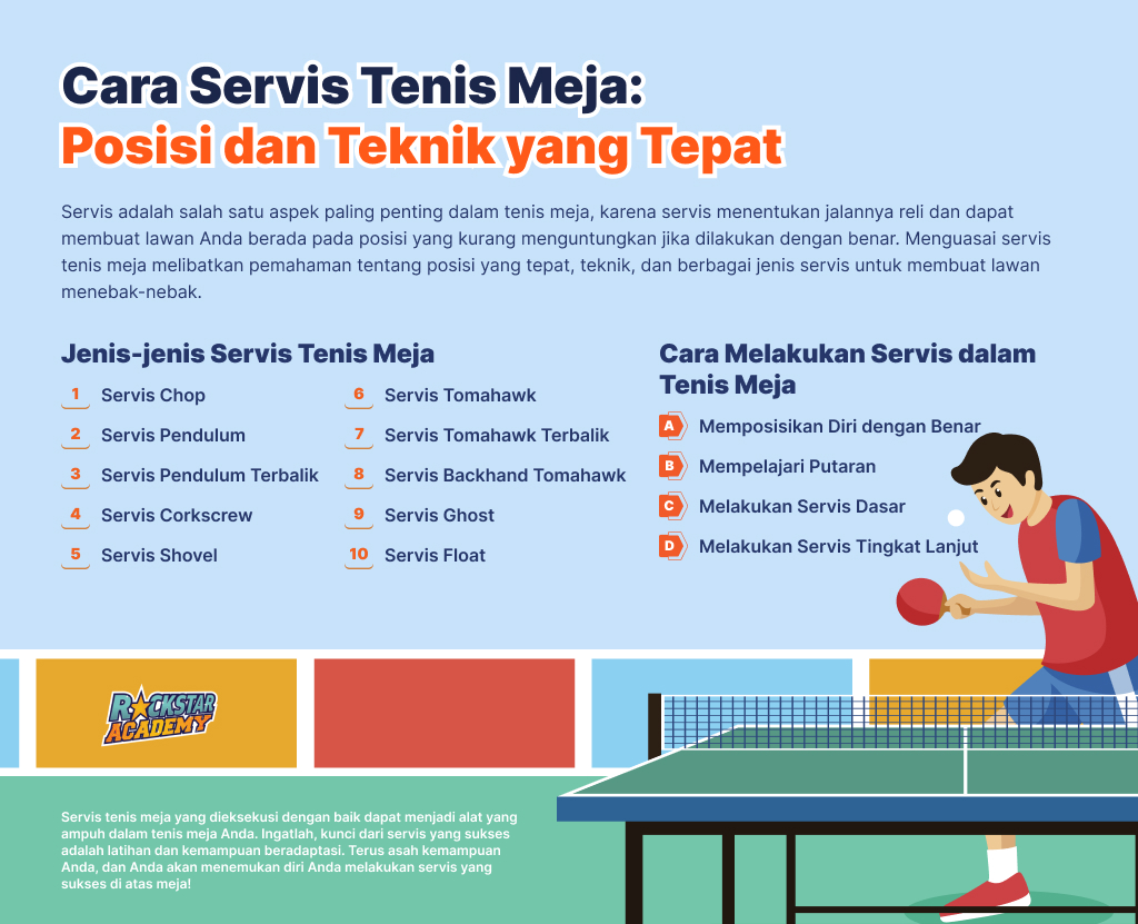 Menguasai servis tenis meja melibatkan pemahaman tentang posisi yang tepat, teknik, dan berbagai jenis servis untuk membuat lawan menebak-nebak.